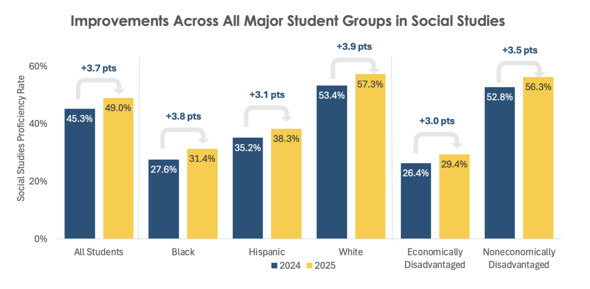 Science and Social Studies Show Consistent Growth Across Student Groups
