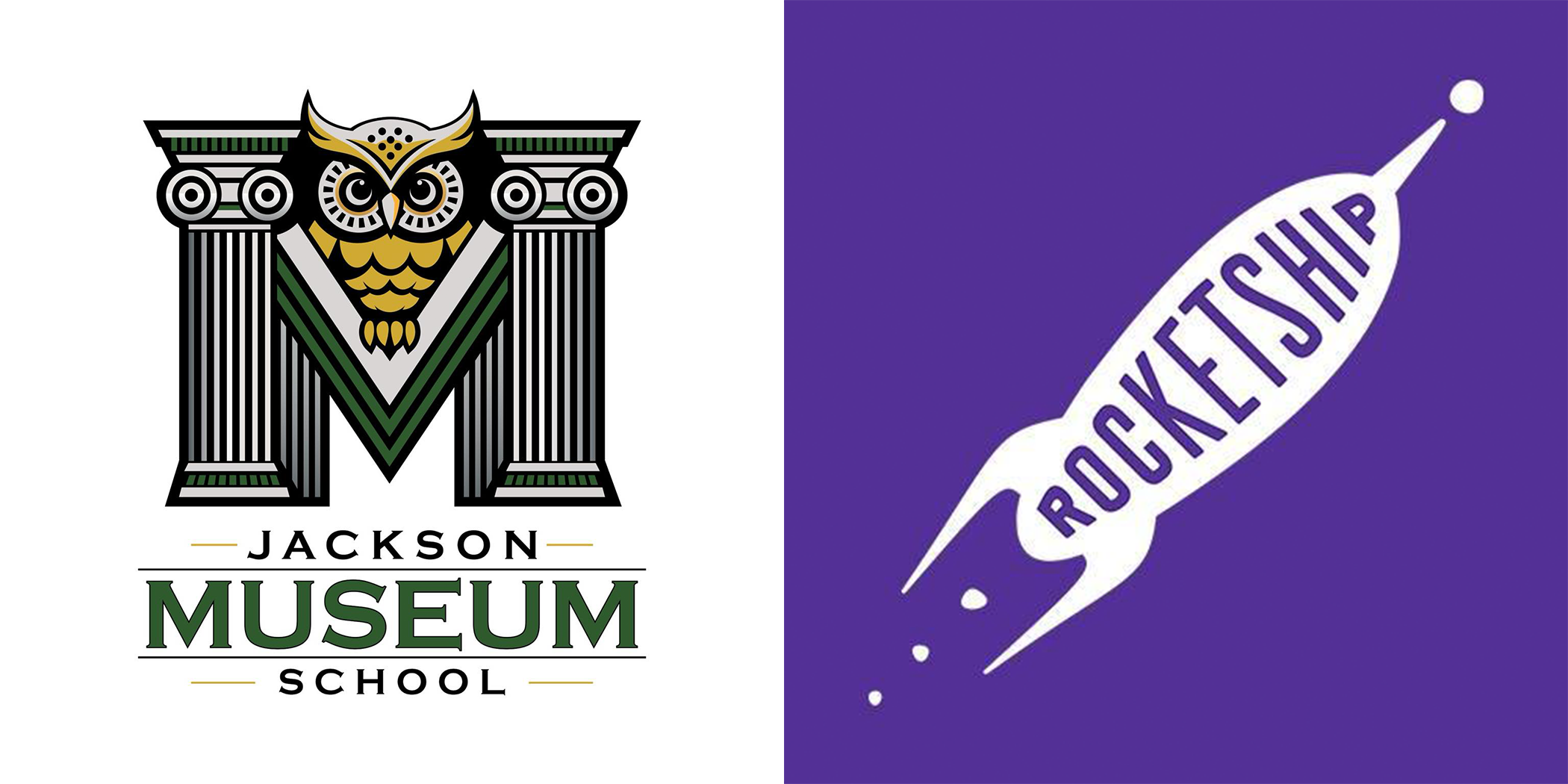 Logos of the Jackson Museum School (left) and Rocketship Public Schools (right)