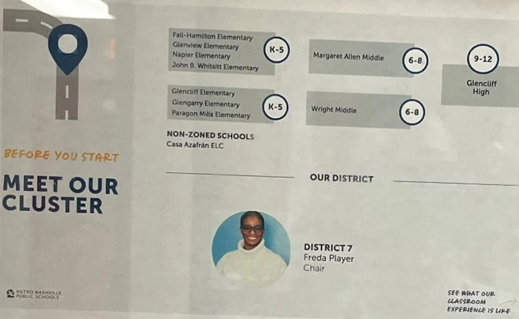 The poster showing an incorrect Glencliff Cluster pathway (Image by LEAD Public Schools)