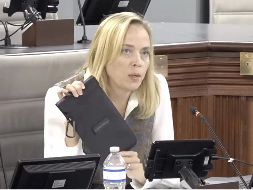 District 10 Board Member Eric Welch questioned whether allowing special pouches for students’ phones, as Reeves suggested, would create enforcement challenges if those pouches were carried in backpacks, because teachers wouldn’t be able to easily tell if the phones were actually in the pouches.
